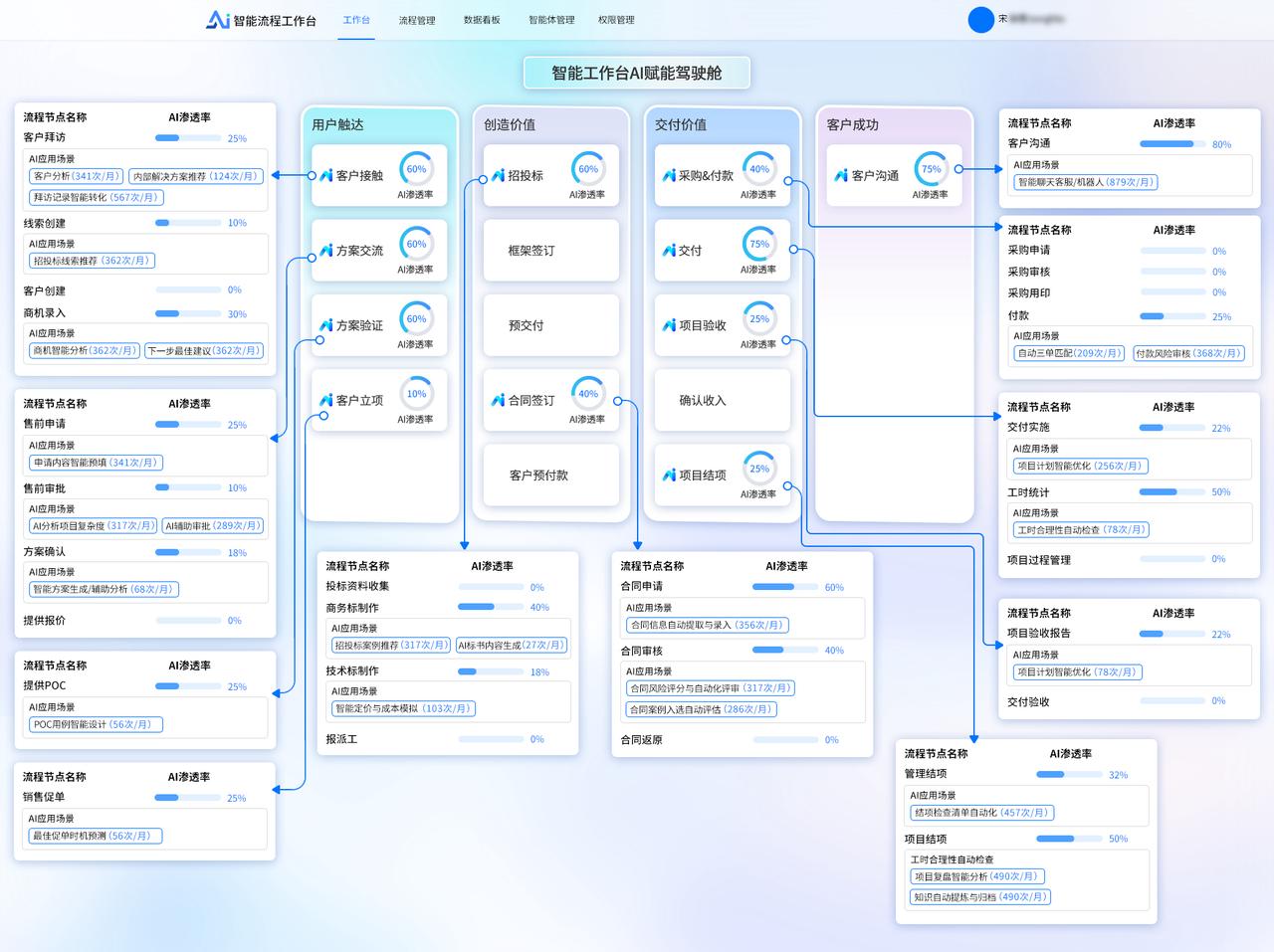 ? 將業(yè)務(wù)流程以作戰(zhàn)地圖的形式進(jìn)行可視化呈現(xiàn),清晰展示流程的各個(gè)環(huán)節(jié)、節(jié)點(diǎn)之間的關(guān)系以及當(dāng)前流程所處階段